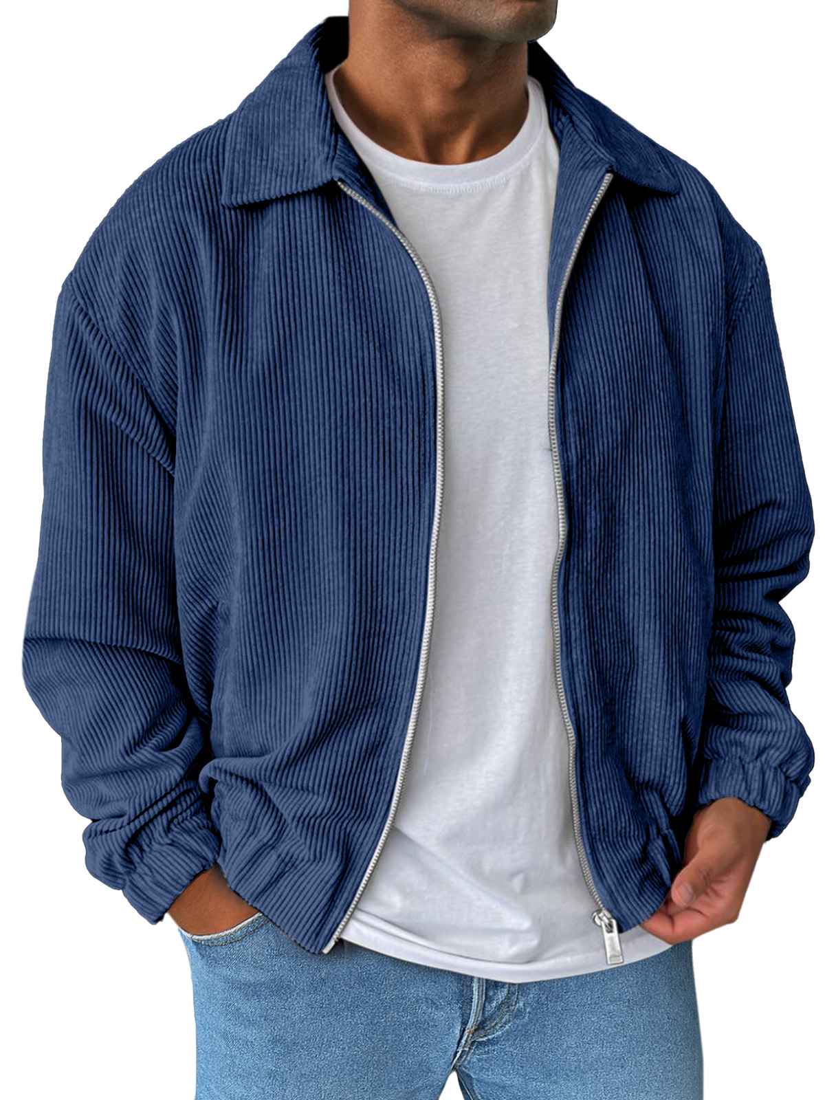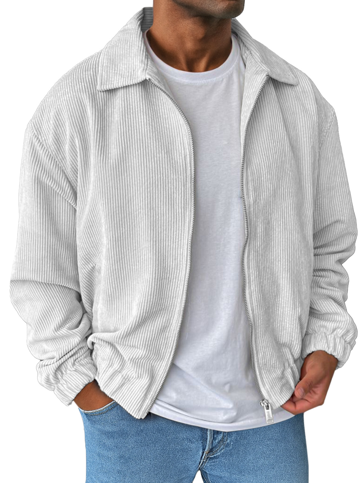 Men's Simple And Comfortable Solid Color Corduroy Lapel Long Sleeve Zipper Jacket