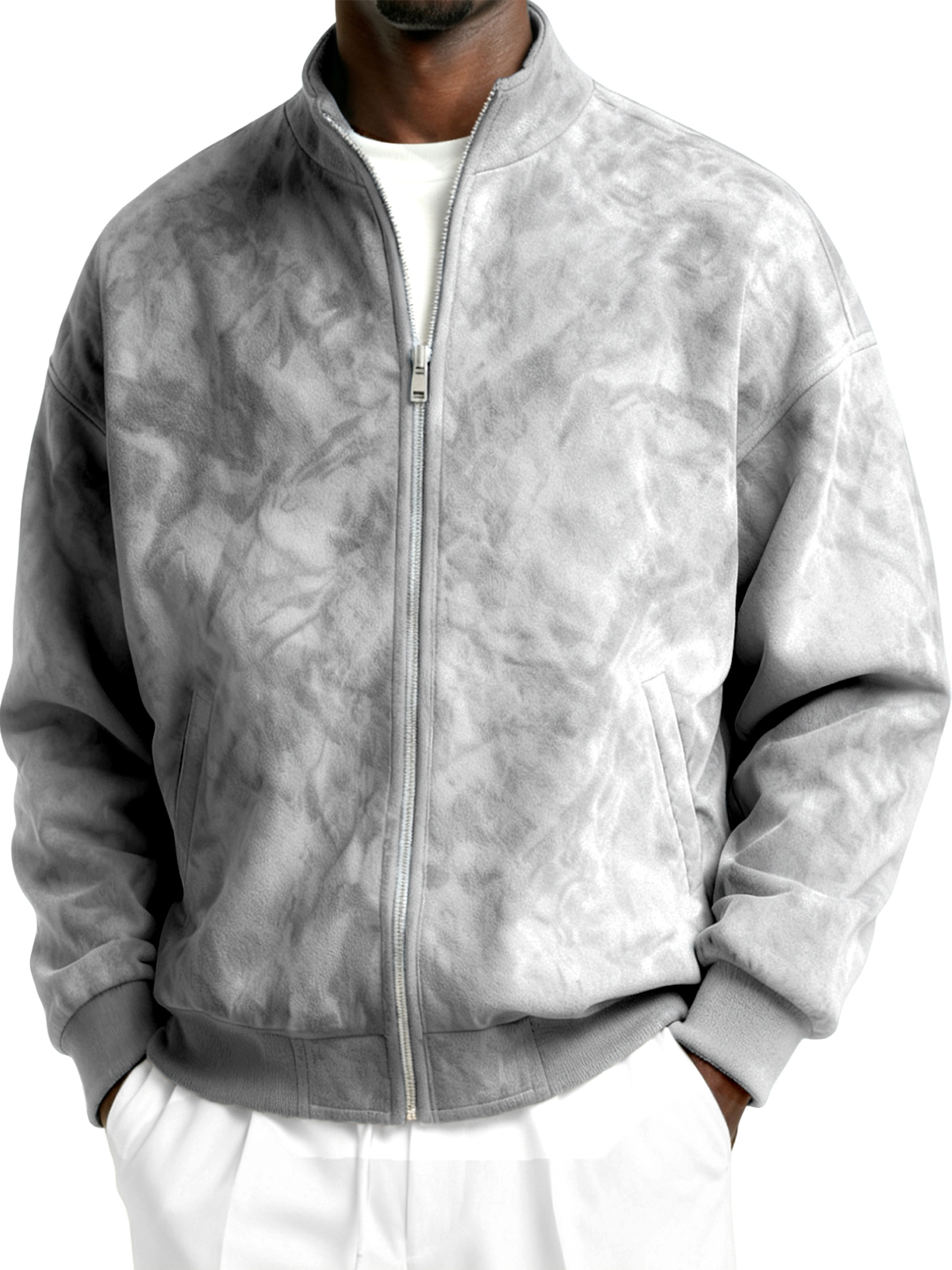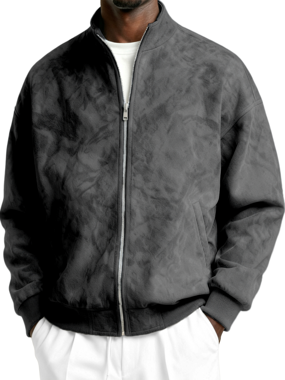 Men's Faxu Suede Textured Comfort Zip-Up Jacket