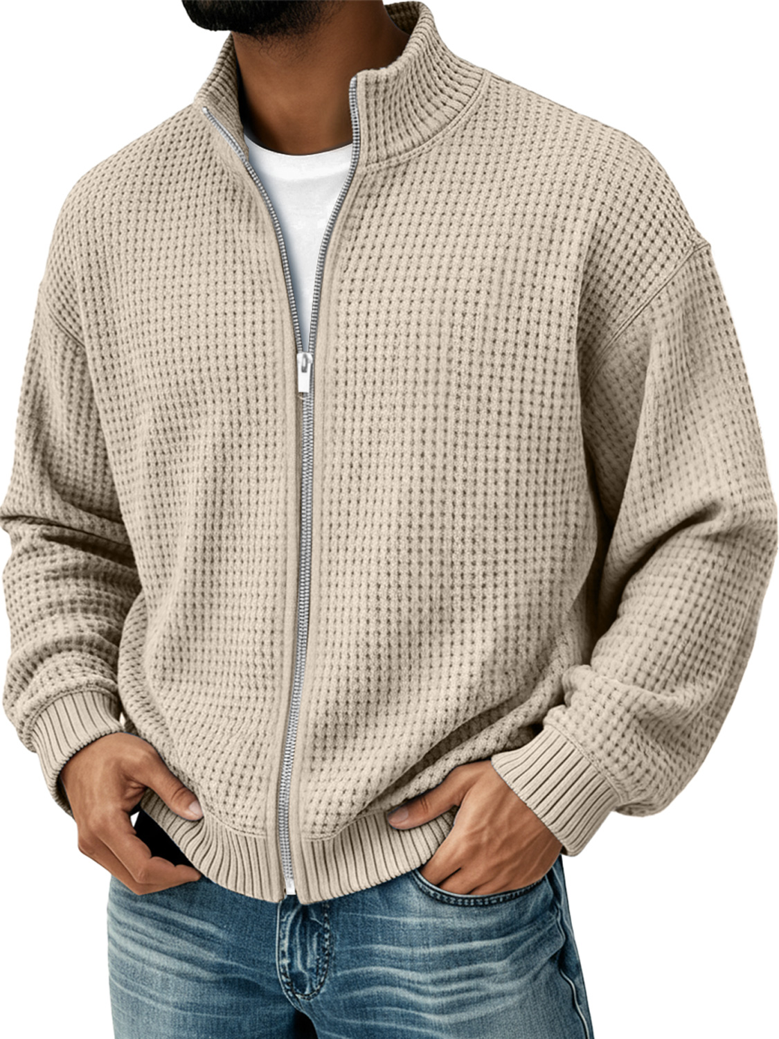 Men's Simple Stand Collar Waffle Casual Zip-Up Jacket