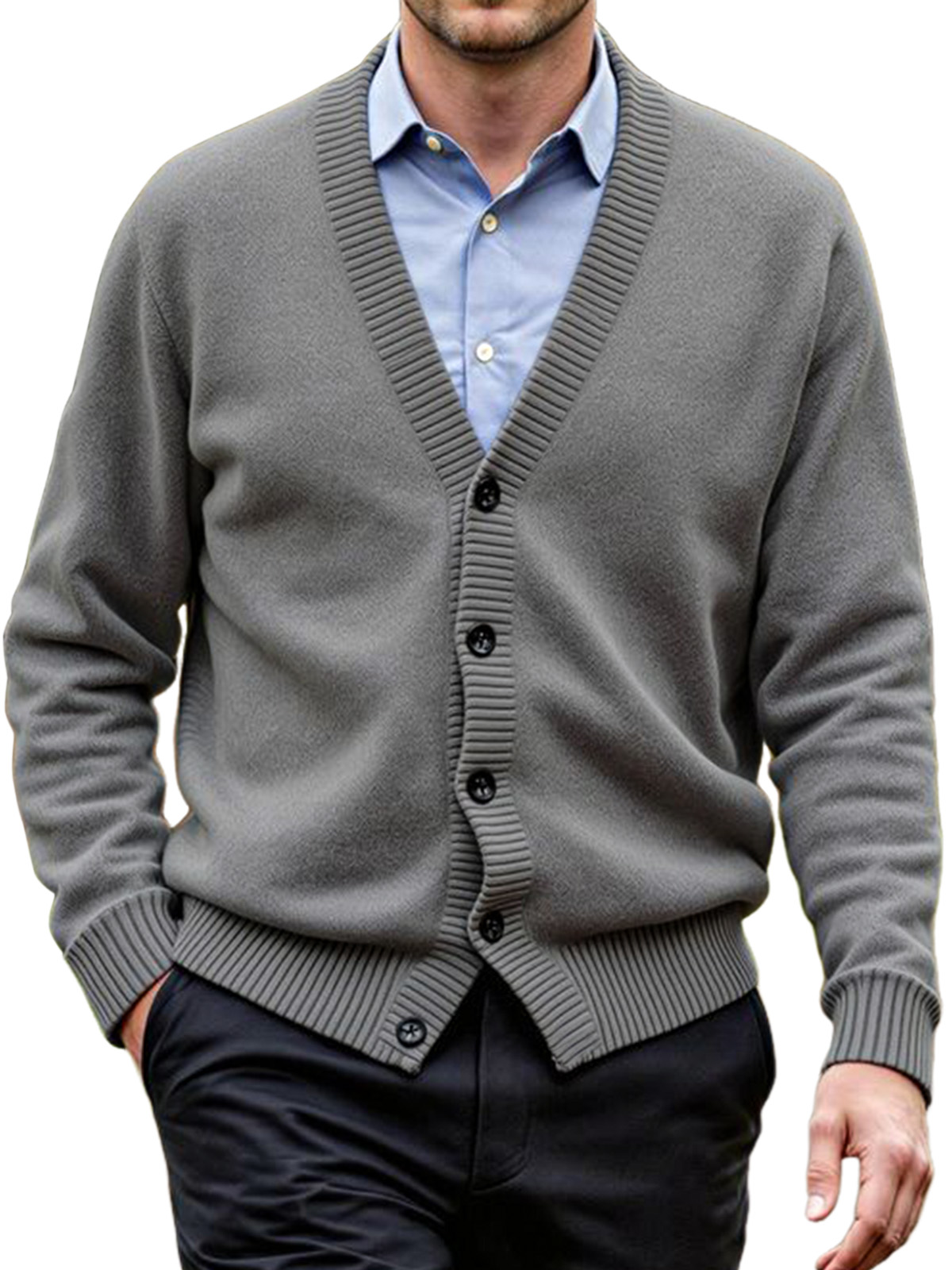 Men's Daily Casual Solid Color Knitted Cardigan Sweater