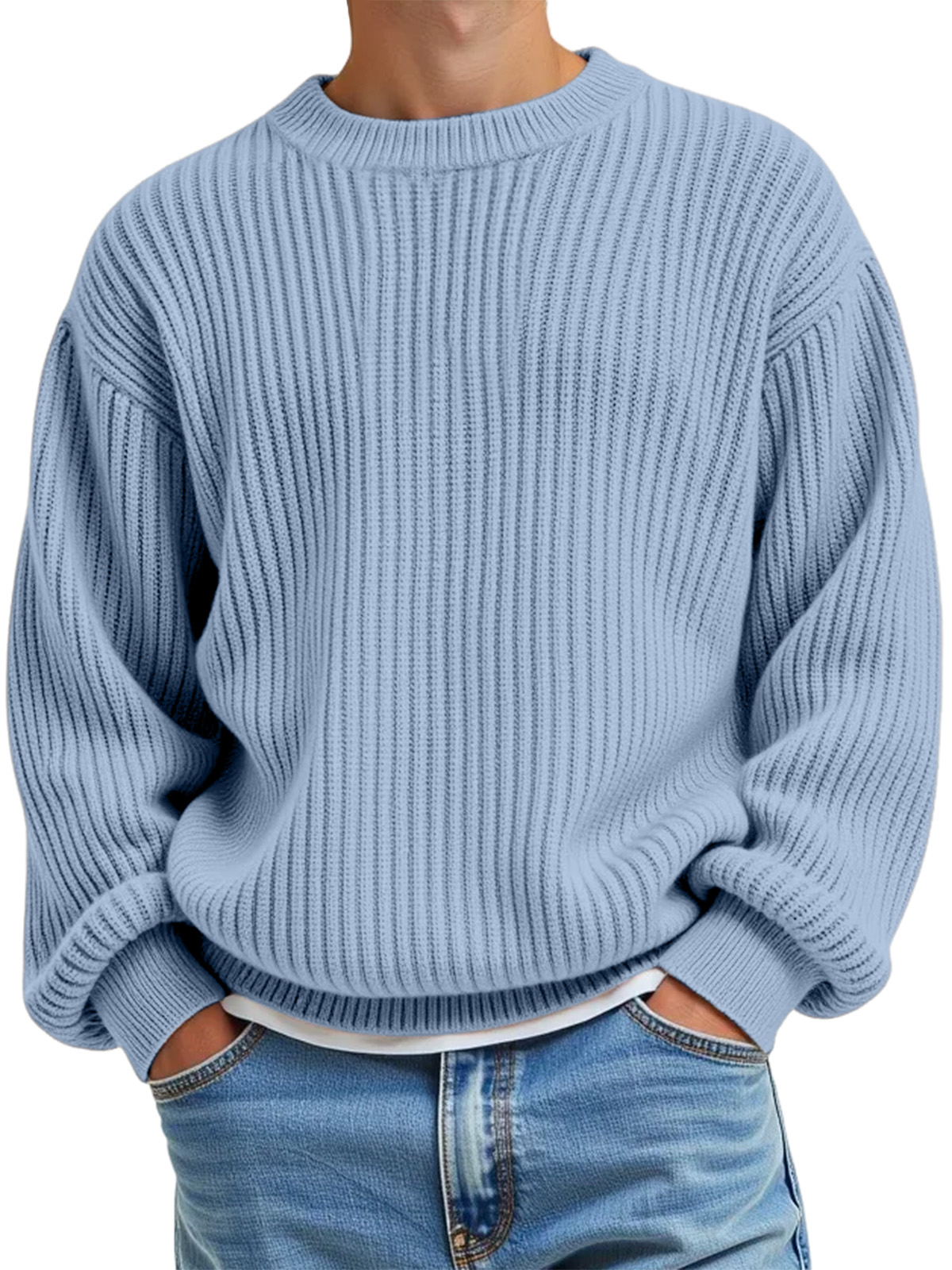Men's Daily Casual Solid Color Knitted Crew Neck Sweater
