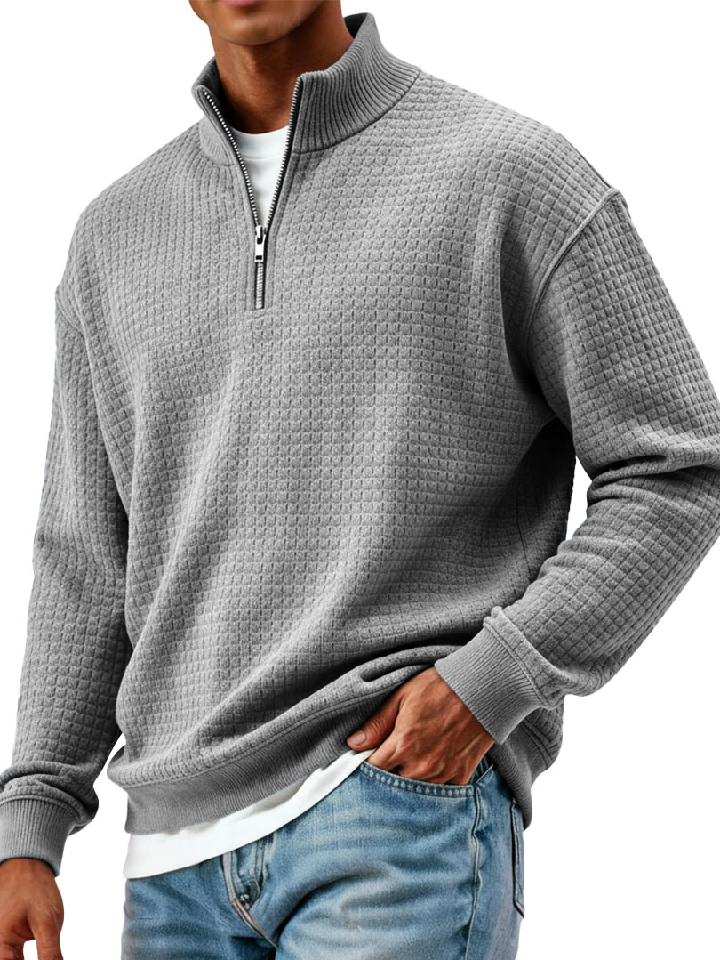 Men's Clothing Fashionable Casual Small Checkered Fabric Standing Collar Long-sleeved Hoodie