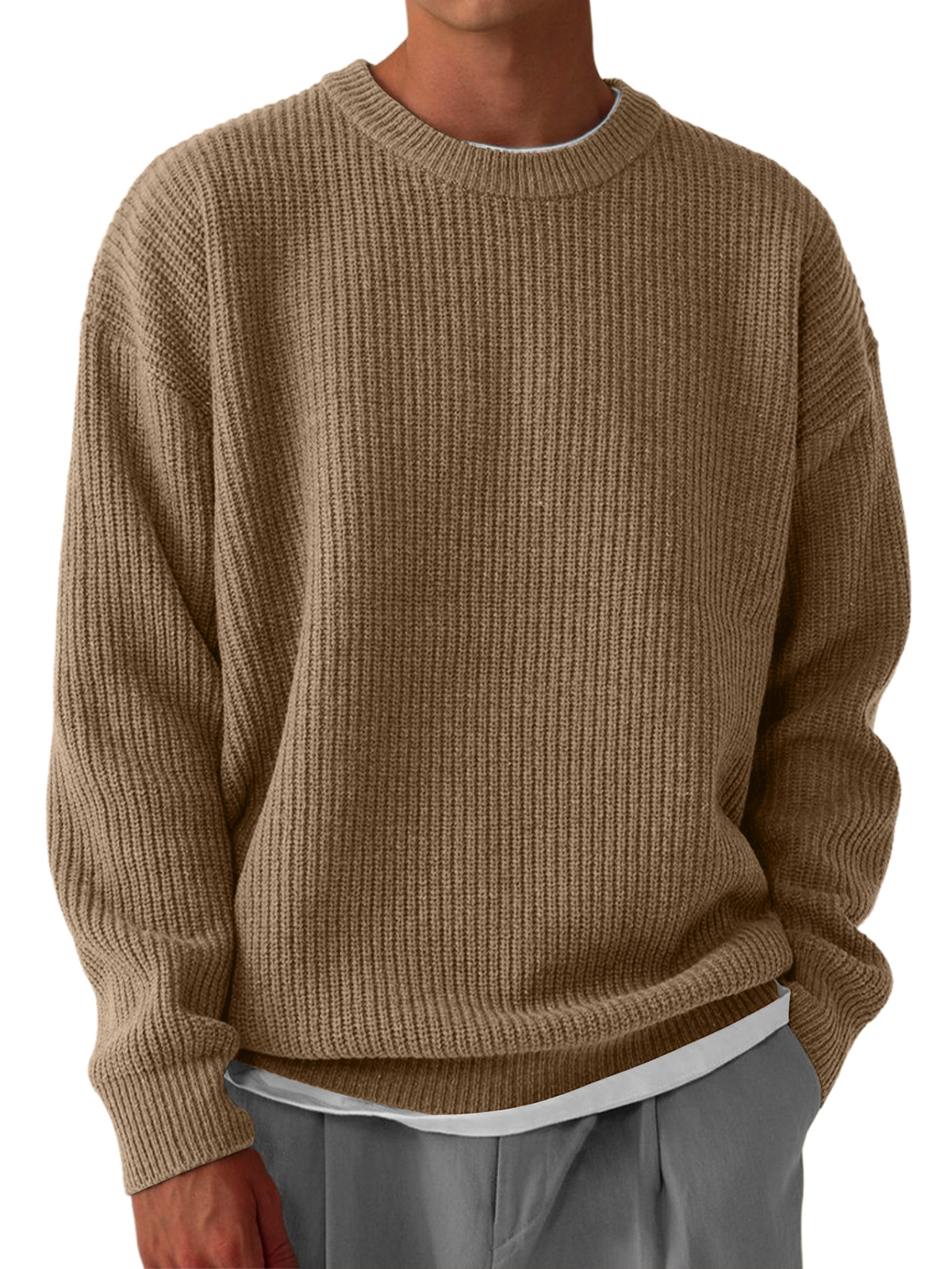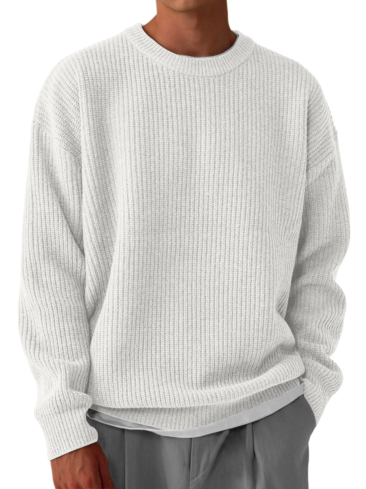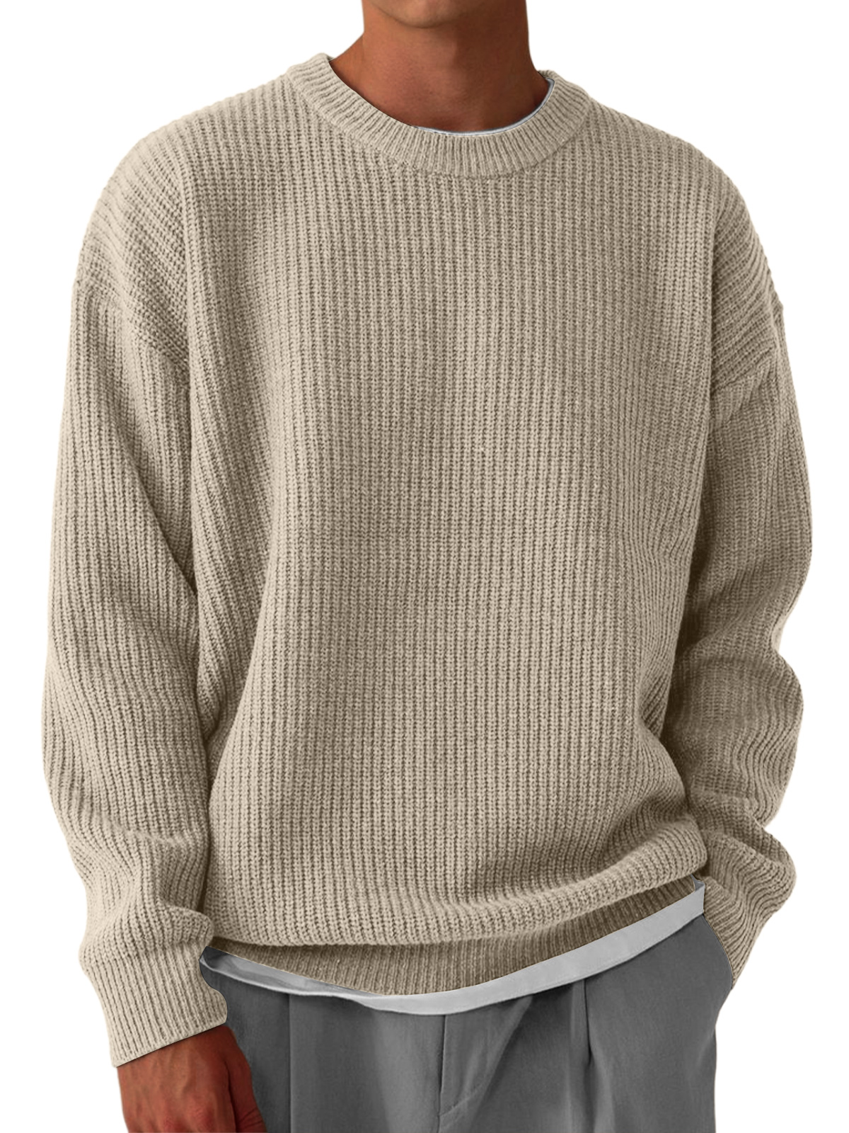 Men's Casual Round Neck Solid Color Knitted Sweater