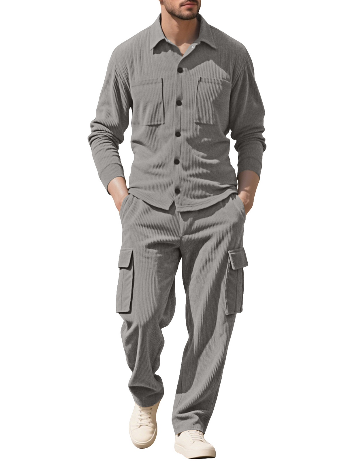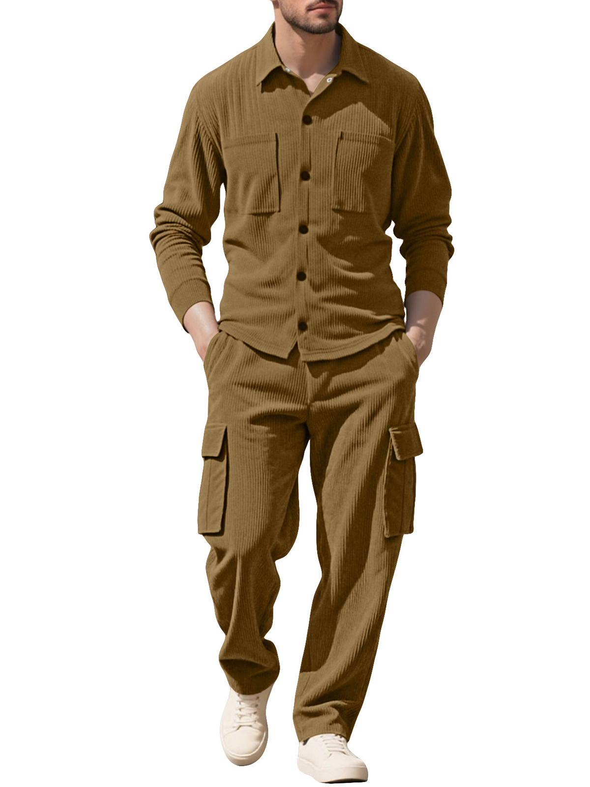 Simple Workwear Corduroy Jacket Casual Multi-pocket Long-sleeved Trousers Suit