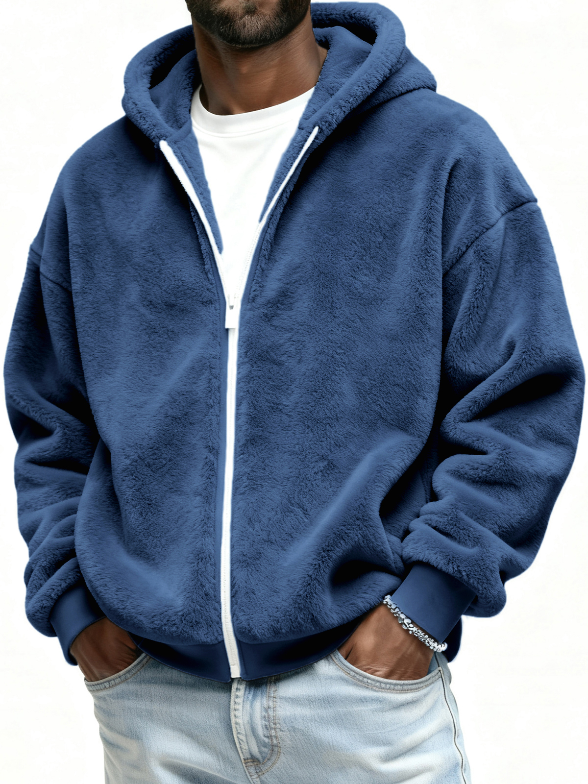 Men's Stylish Casual Patchwork Plush Warm Long-sleeved Hooded Jacket