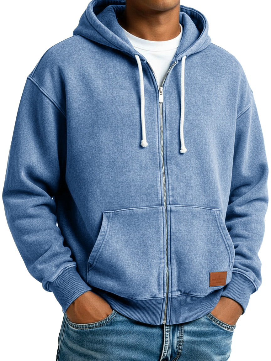 Men's Fashion Waffle Texture Casual Loose Hooded Zipper Jacket