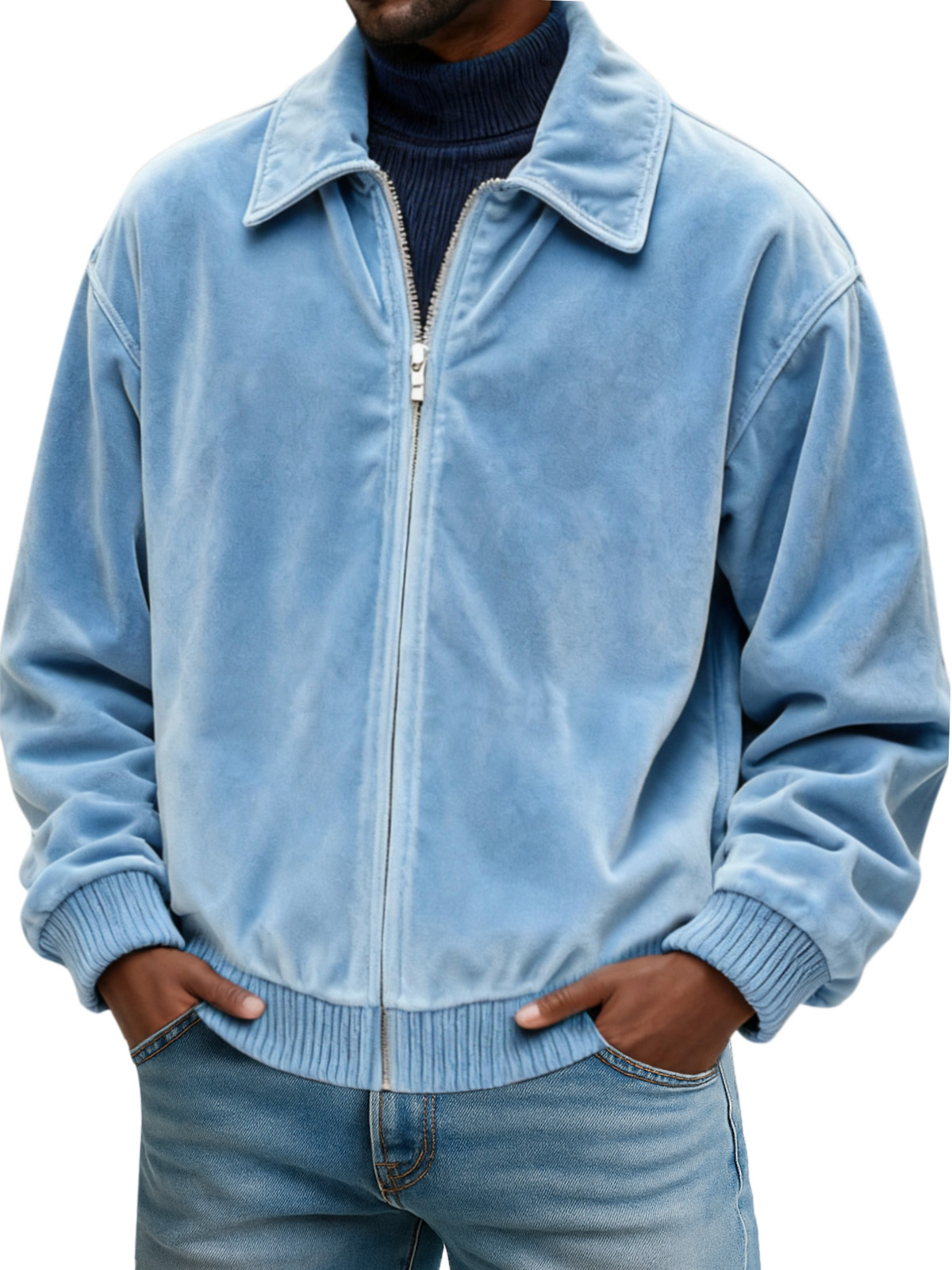 Men's Simple And Comfortable Solid Color Corduroy Lapel Long Sleeve Zipper Jacket