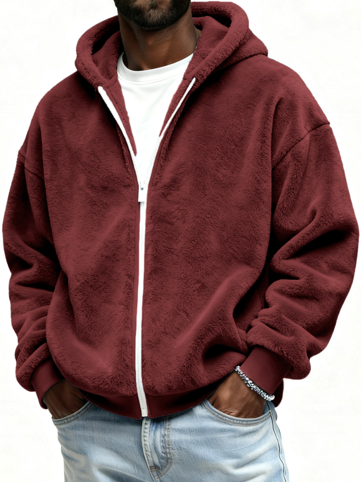 Double-faced Fleece Warm Jacket Loose Hooded Coat
