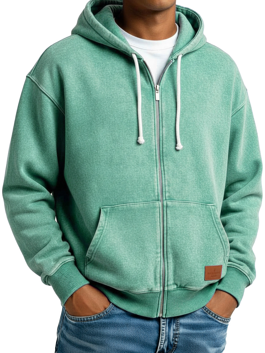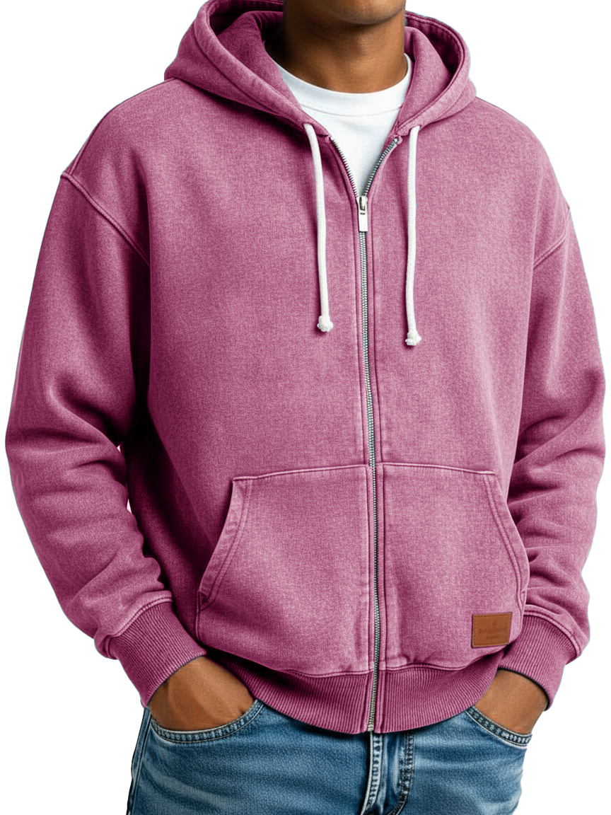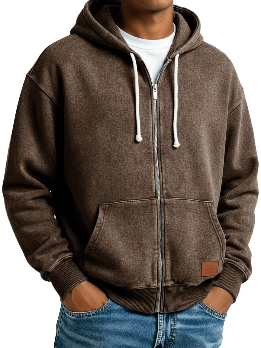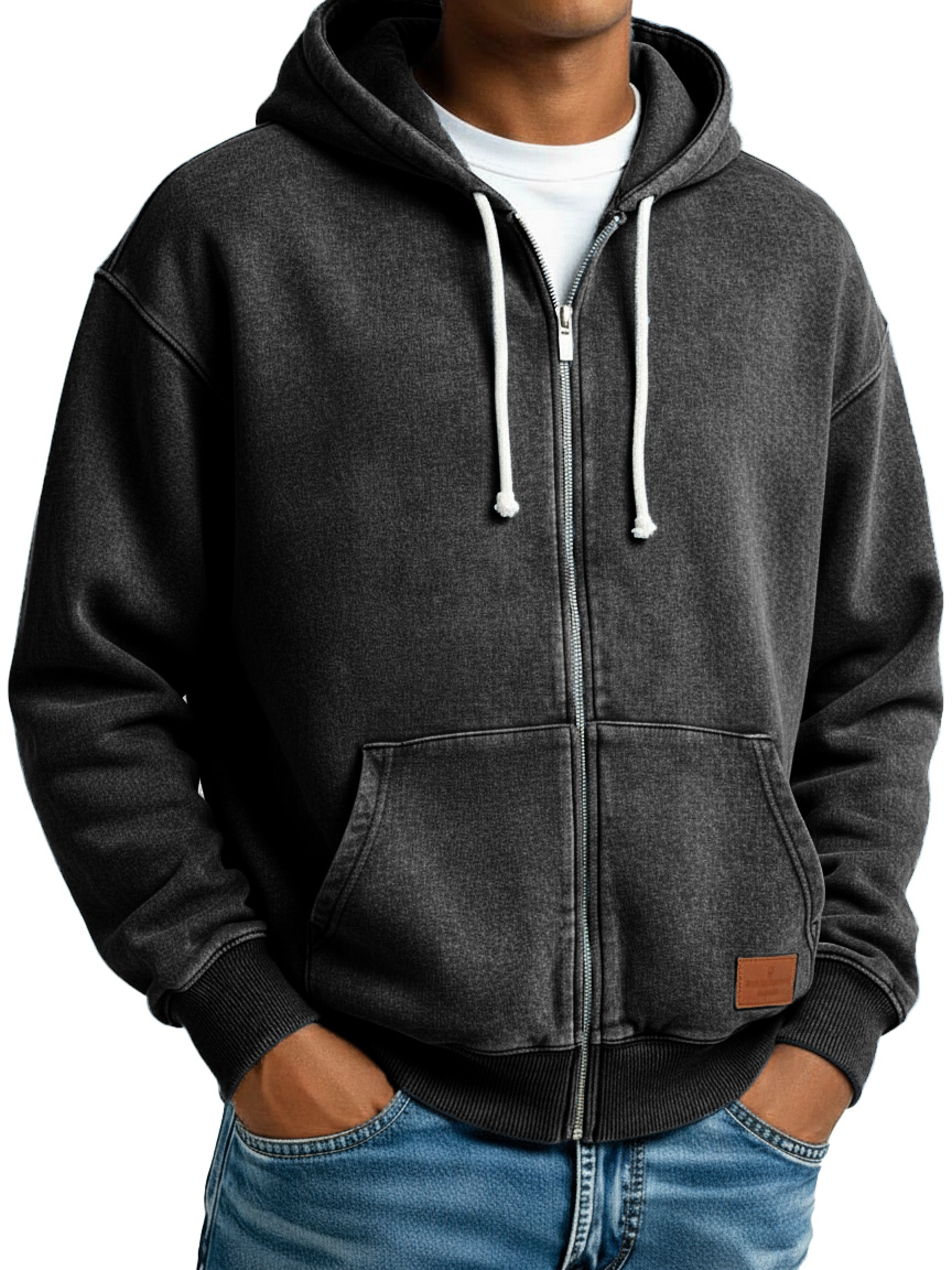 Men's Clothing Fashion Retro Vintage Embroidery Logo Leather Card Long-sleeved Cardigan Pocket Hoodie