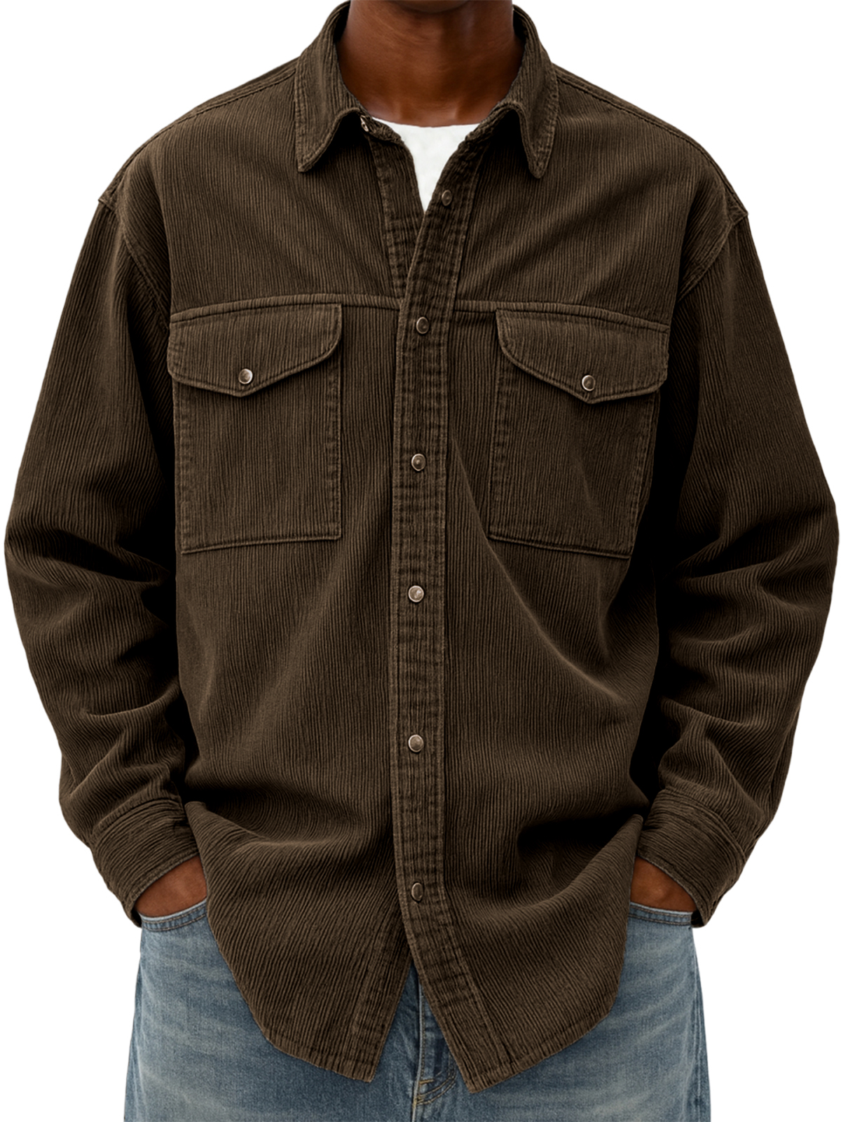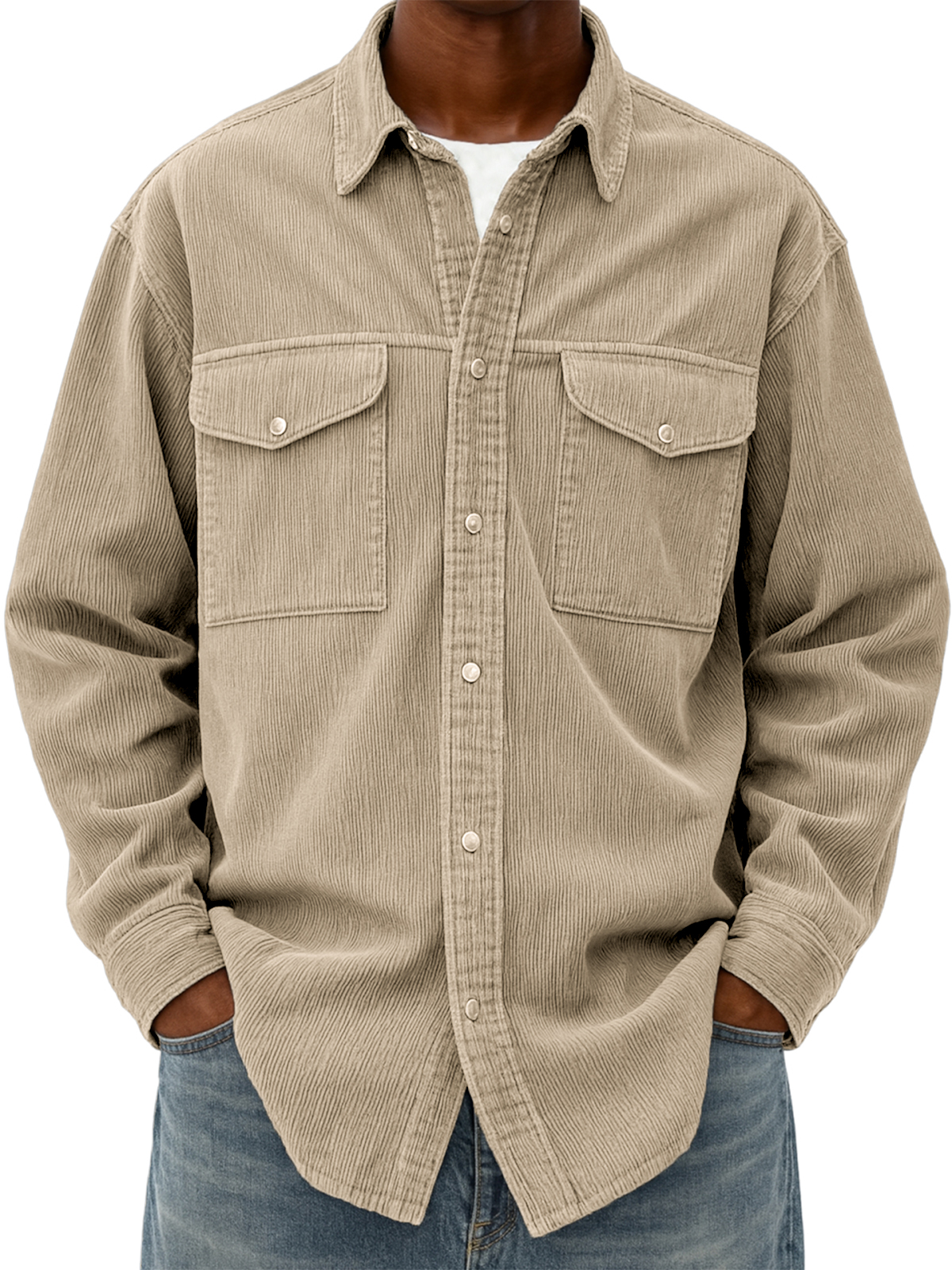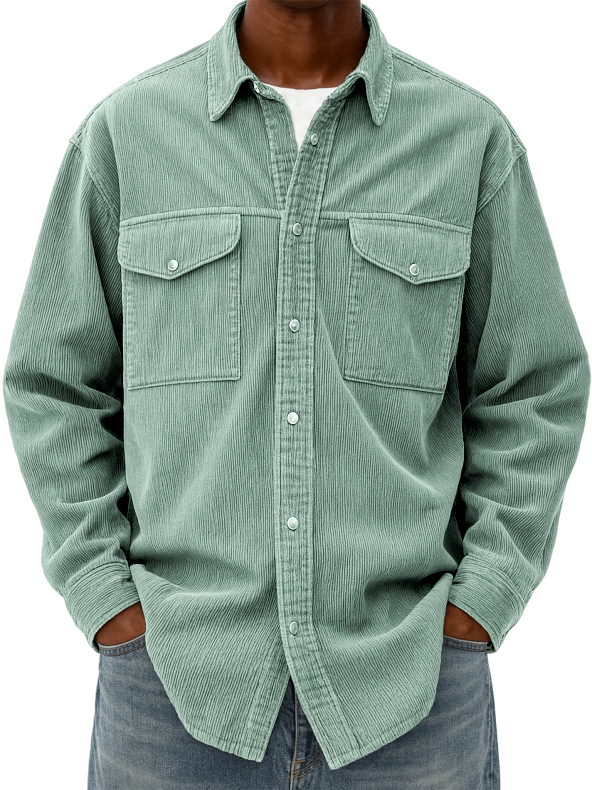 Men's Corduroy Shirt Multi-Pocket Work Jacket
