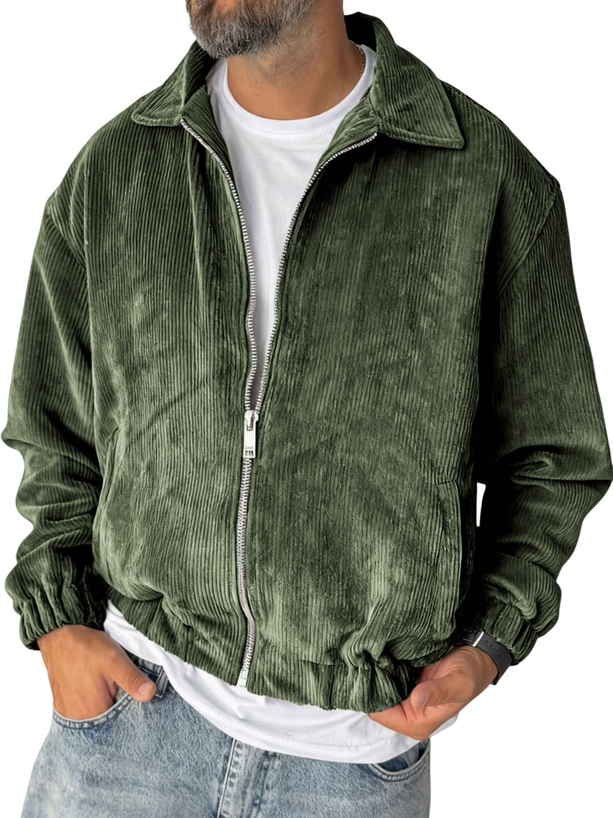Men's Stylish Zip-up Corduroy Ribbed Casual Everyday Jacket