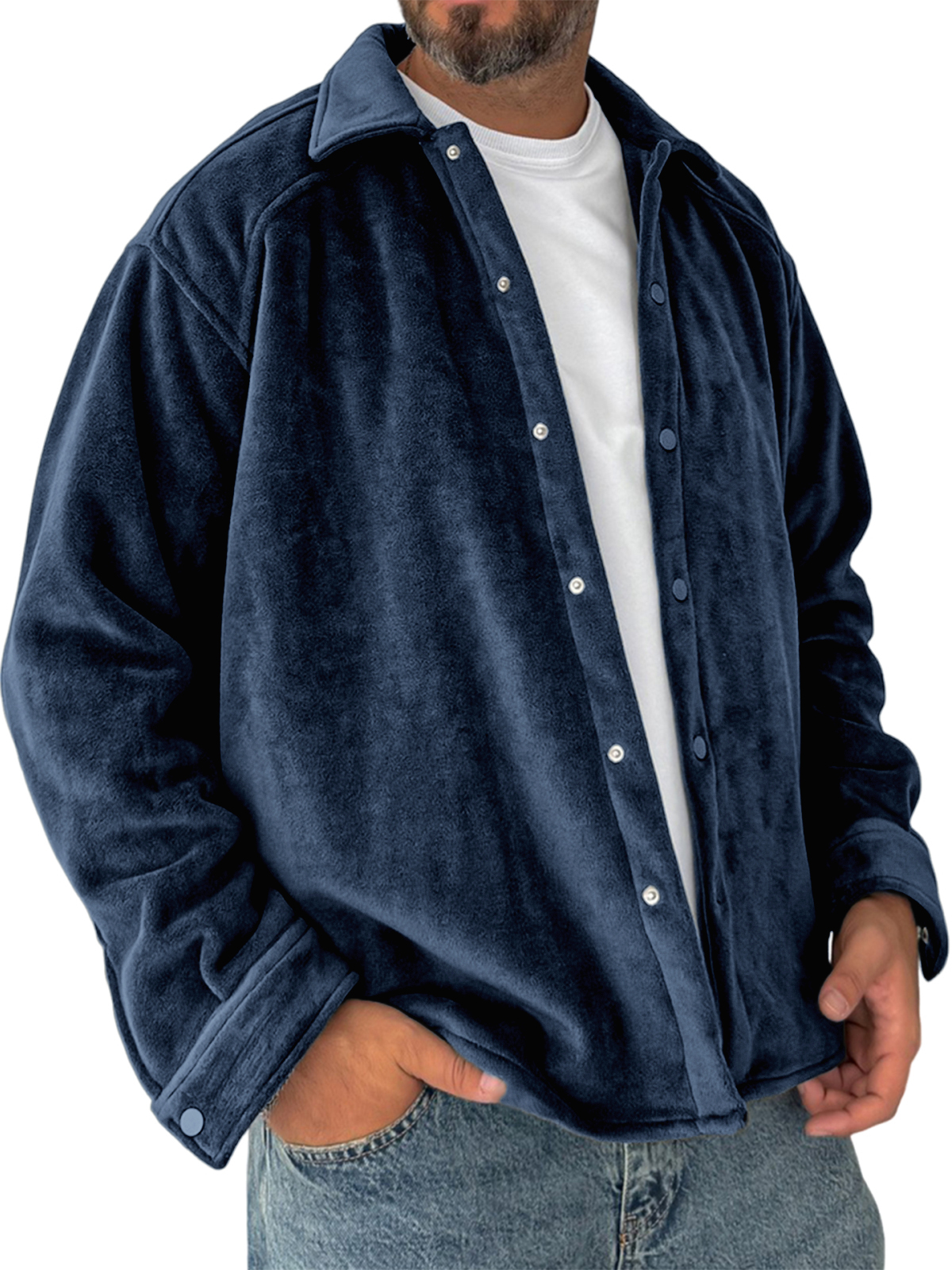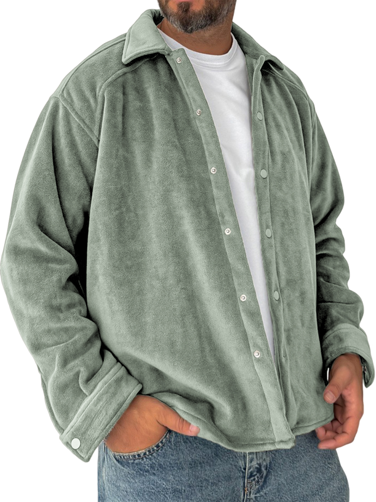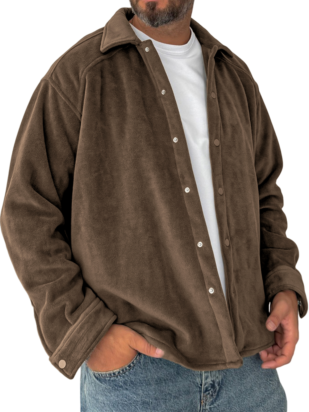 Men's Vintage Fleece Jacket Warm Casual Cardigan Shirt