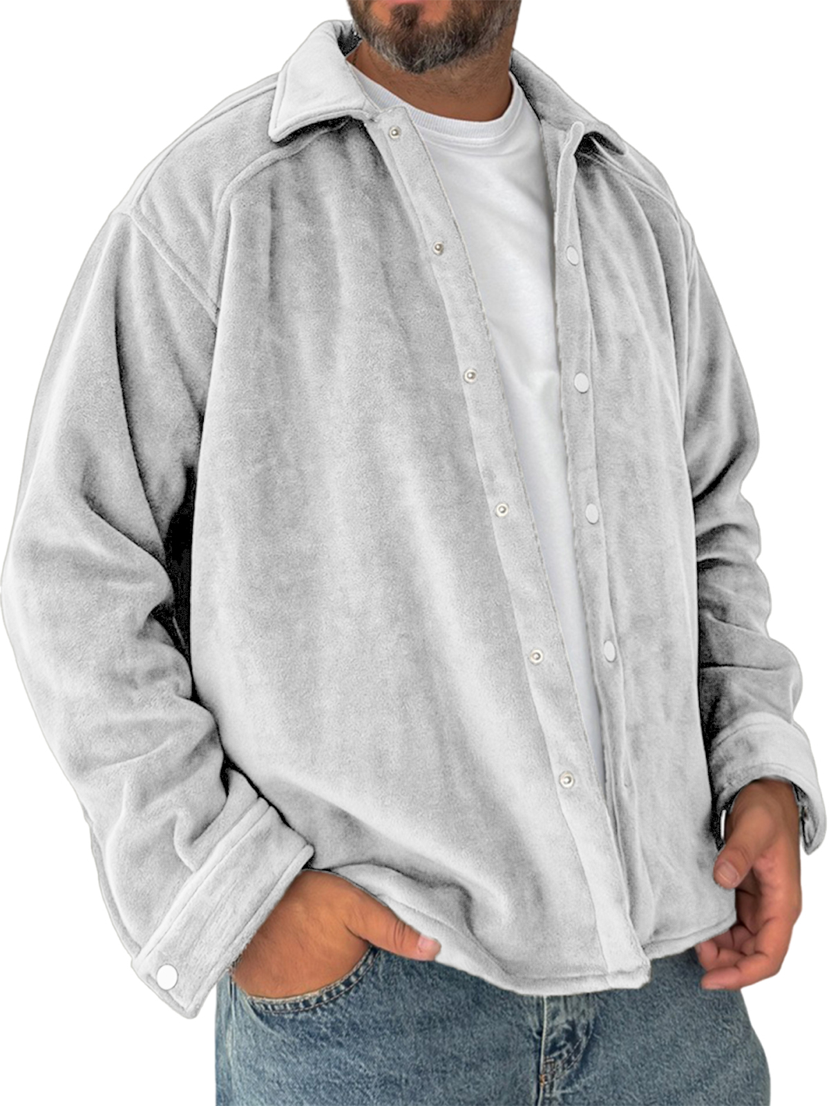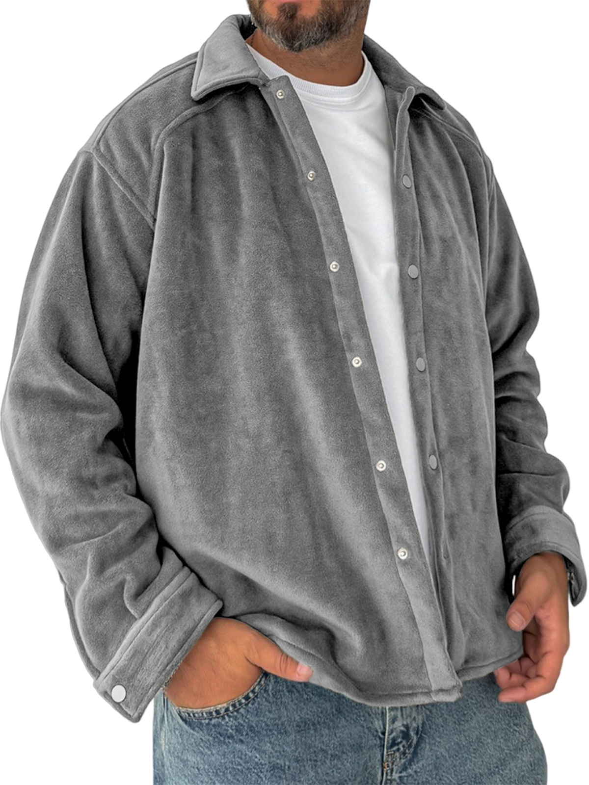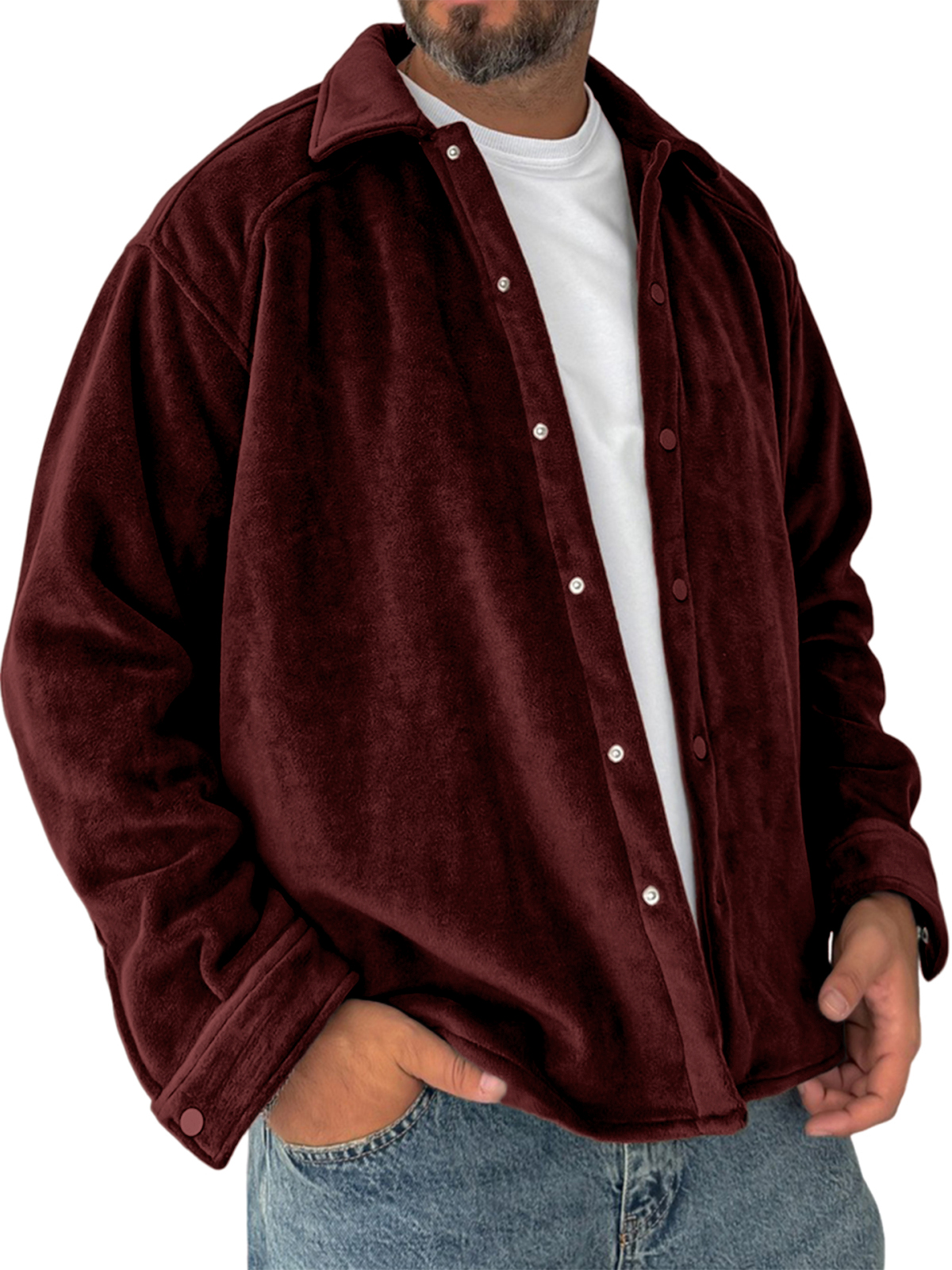 Men's Vintage Fleece Jacket Warm Casual Cardigan Shirt